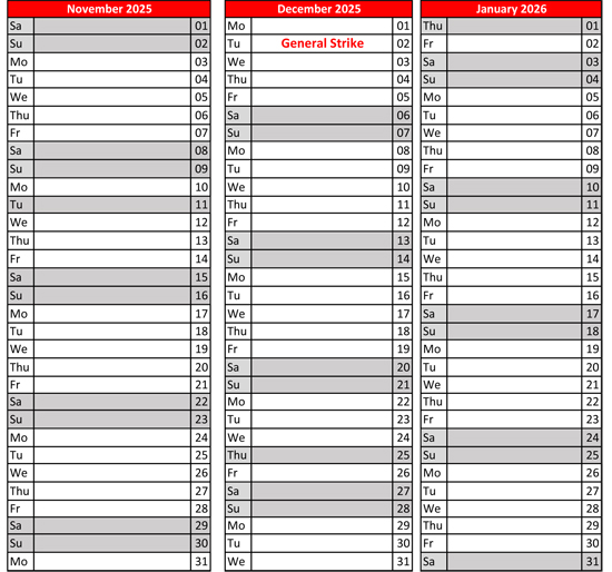 2 December 2025: General National Strike.